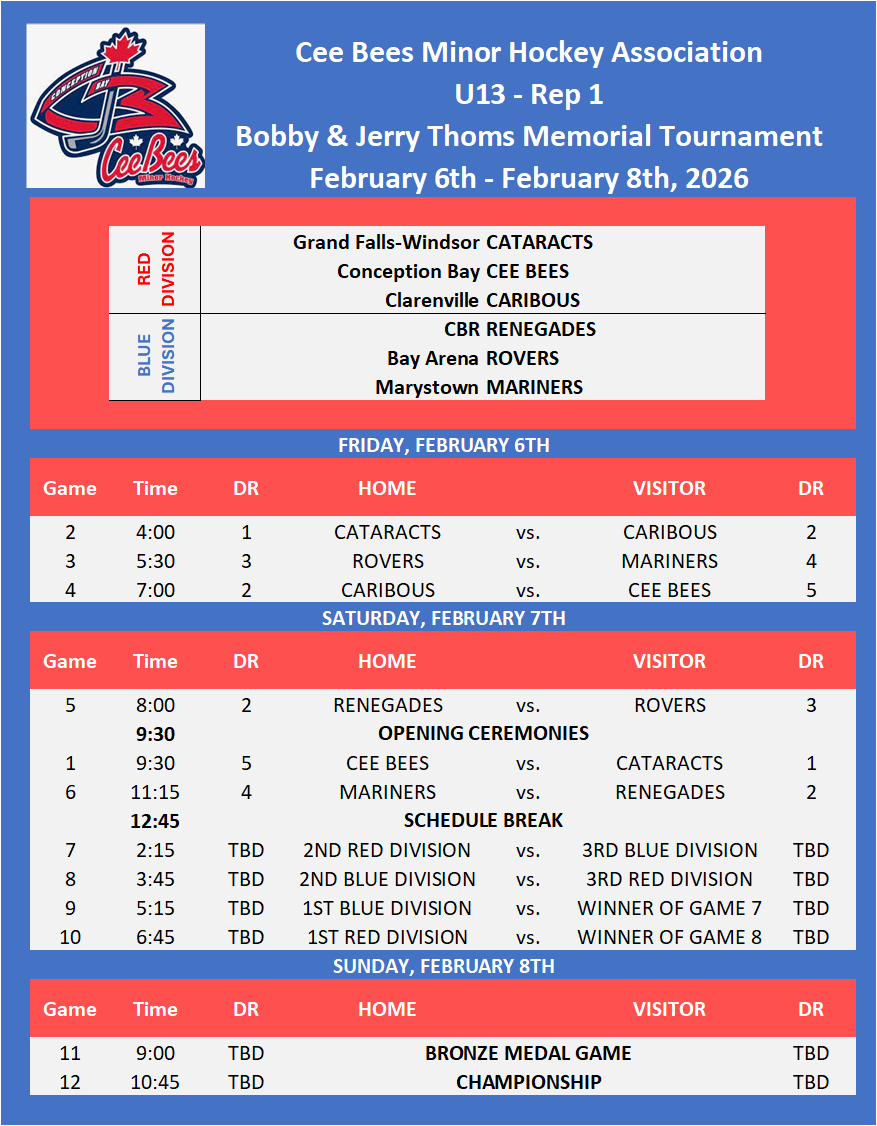 U13 Rep 1 Bobby and Jerry Thoms Memorial Tournament Schedule