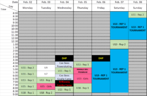 | 2:15 | U13 – REP 1 TOURNAMENT | See Tour. Schedule | |