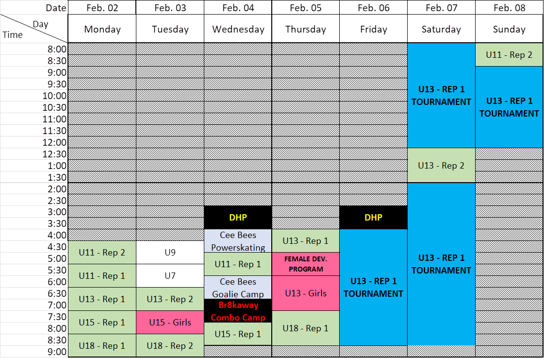 | 6:00 | Cee Bees Goalie Camp | 2 | |