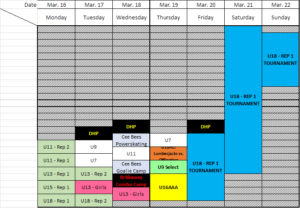 | 4:00 | U18 – REP 1 TOURNAMENT | See Tournament Schedule | |