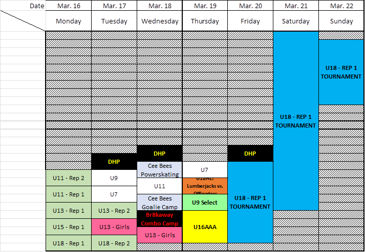| 6:00 | Cee Bees Goalie Camp | 4 | |