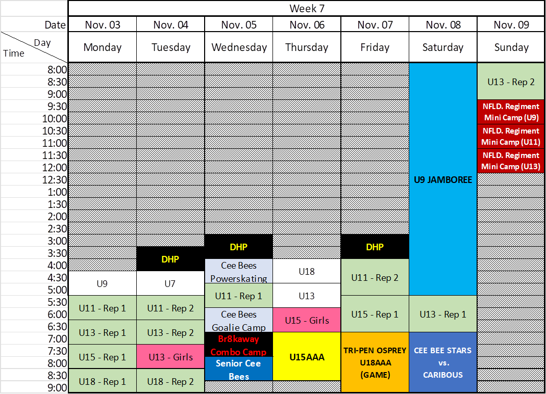 | 11:30 | NFLD. Regiment Mini Camp (U13) | 3 & 4 | |